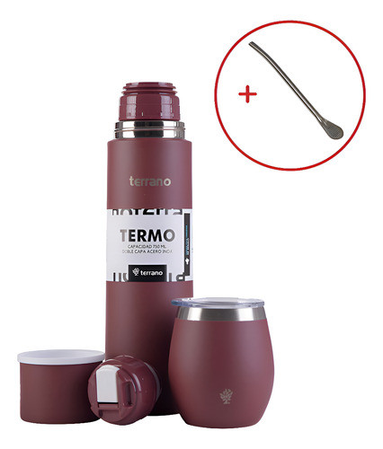 Termo Terrano 750ml Con Mate Y Bombilla -kit Para Tomar Mate Bordo Bala C Tapa