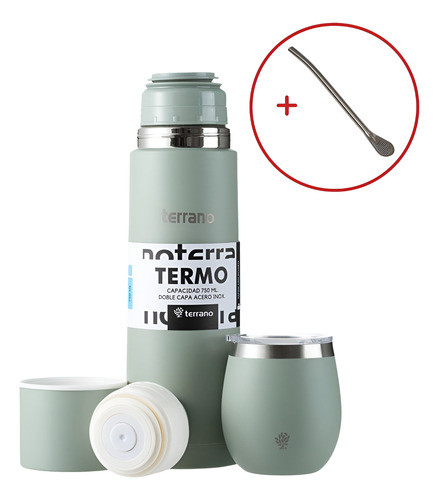 Termo Terrano 750ml Con Mate Y Bombilla -kit Para Tomar Mate Oliva Bala C Tapa