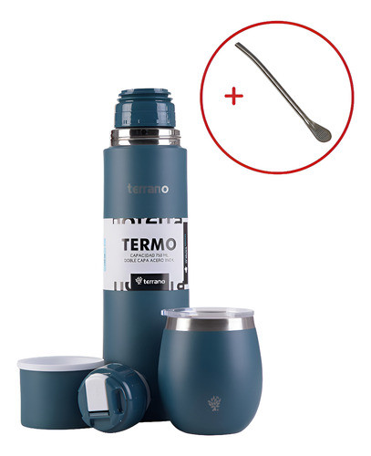 Termo Terrano 750ml Con Mate Y Bombilla -kit Para Tomar Mate Petroleo Bala C Tapa
