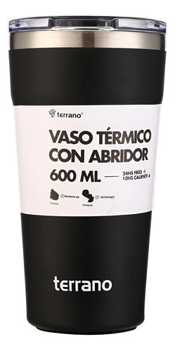 Vaso Térmico Terrano Con Tapa 600ml Color Negro
