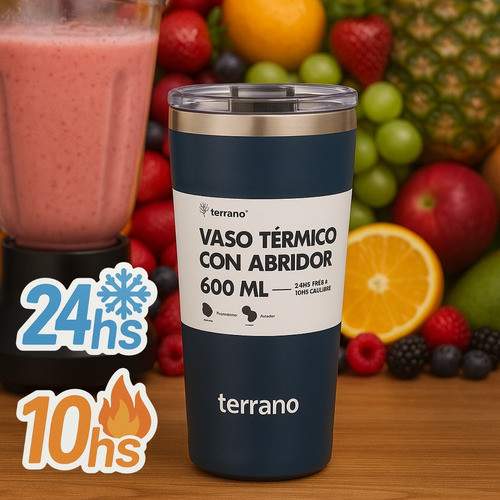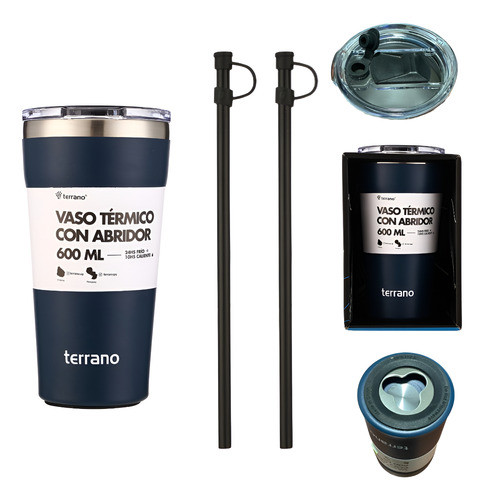 Vaso Termico Terrano 600ml Sorbito Tapa Acrilica Y Abridor Azul Opaco