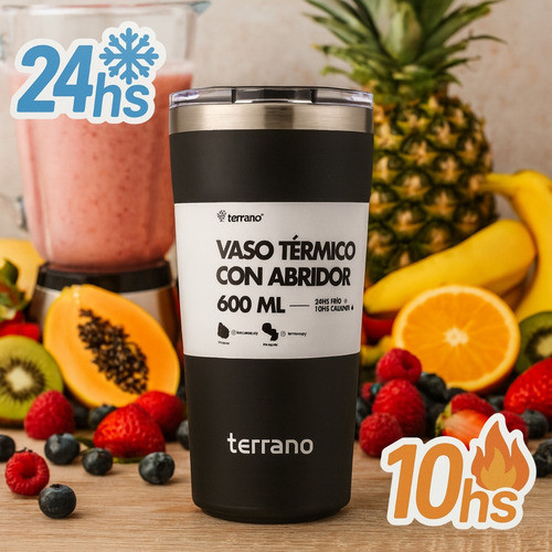 Vaso Termico Terrano 600ml Sorbito Tapa Acrilica Y Abridor Negro