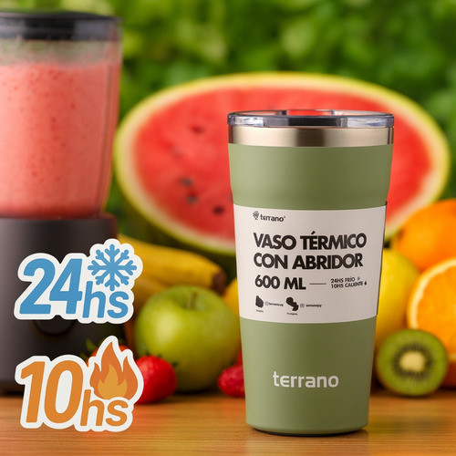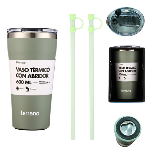 Vaso Termico Terrano 600ml Sorbito Tapa Acrilica Y Abridor Oliva