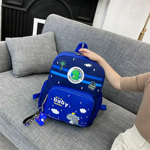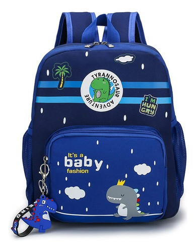 Mochila Infantil Escolar Dinosaurio Niño Jardin Llavero Dino Azul Dinosaurio